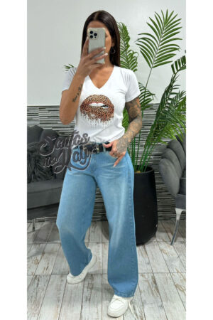 Remera en algodón premium, boca glitter