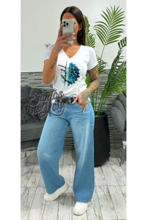 Remera en algodón peinado premium, estampa serigráfica flor +colores