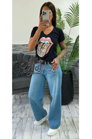 Remera en algodón premium, estampa boca estrella +colores