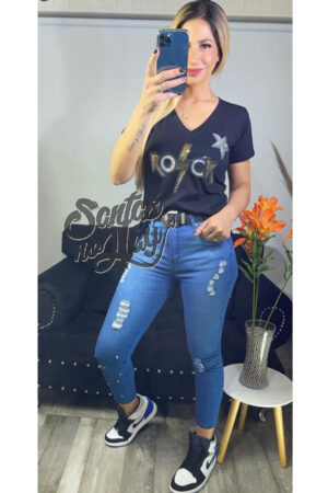 Remera en algodón peinado premium, aplique rock rayo estrella lentejuelas +colores xtalle