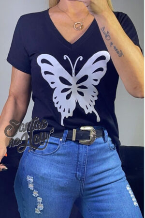 Remera en algodón peinado premium, aplique gamuzado mariposa +colores xtalle