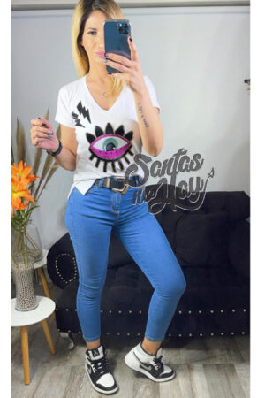 Remera en algodón peinado premium, aplique ojos rayos lentejuelas +colores xtalle