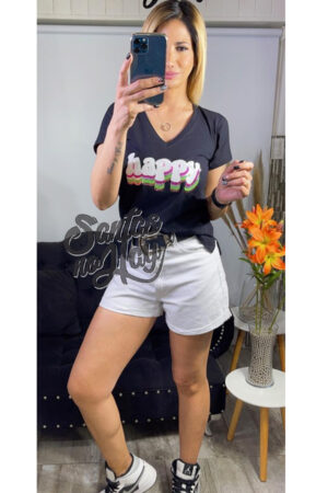 Remera en algodón peinado premium, aplique happy lentejuelas +colores xtalle