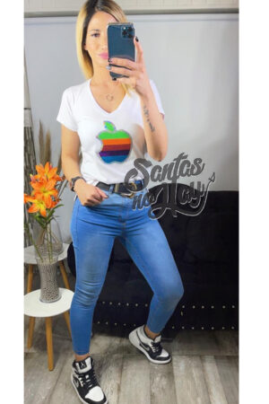 Remera en algodón peinado premium, aplique manzana lentejuelas +colores xtalle