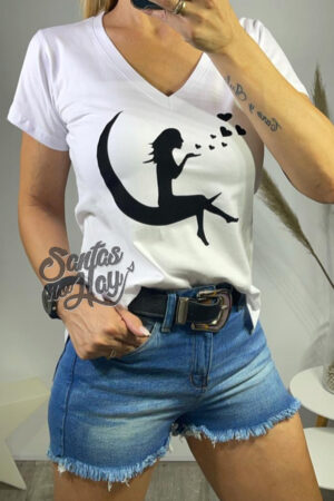 Remera en algodón peinado premium, estampa gamuzada luna +colores xtalle