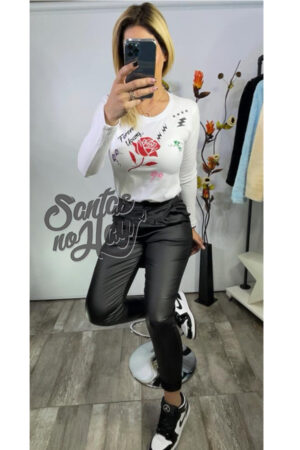 Básica aplique boca print lentejuelas, algodón peinado premium