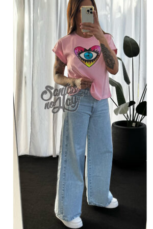Remera corazon ojo en algodón , manga rebatible, abarca hasta XL , +colores
