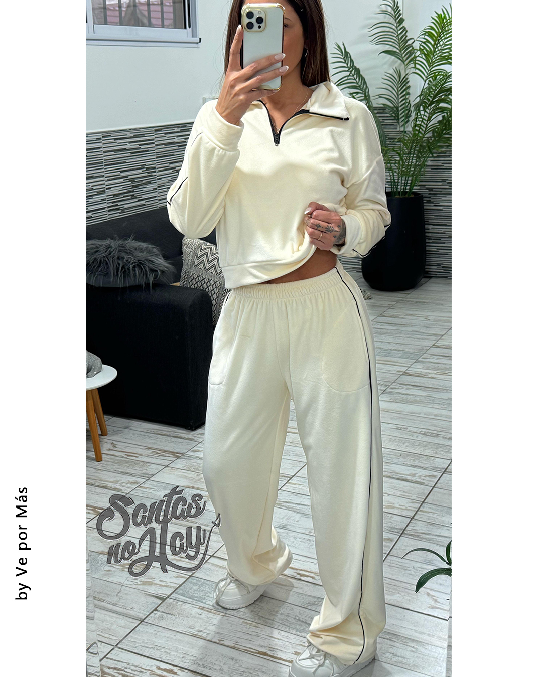 Conjunto de plush detalles ribetes , panta y buzo , con bolsillos +colores xtalle