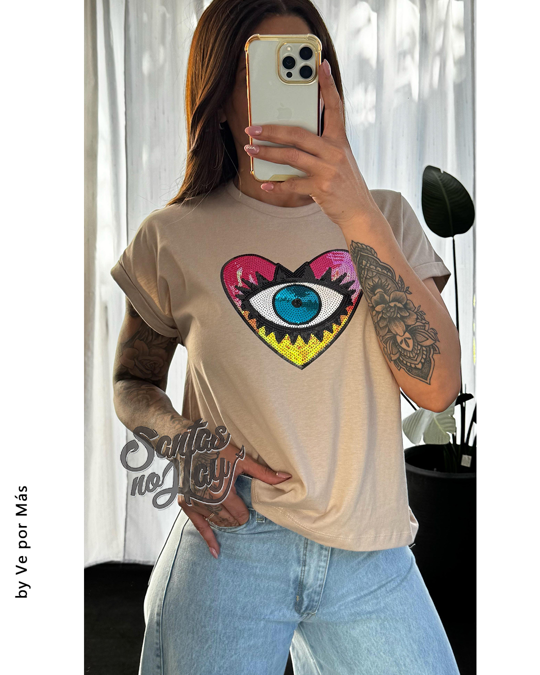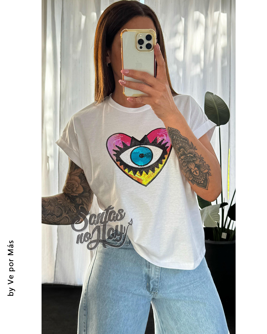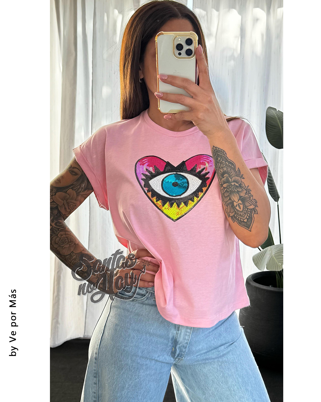 Remera corazon ojo en algodón , manga rebatible, abarca hasta XL , +colores