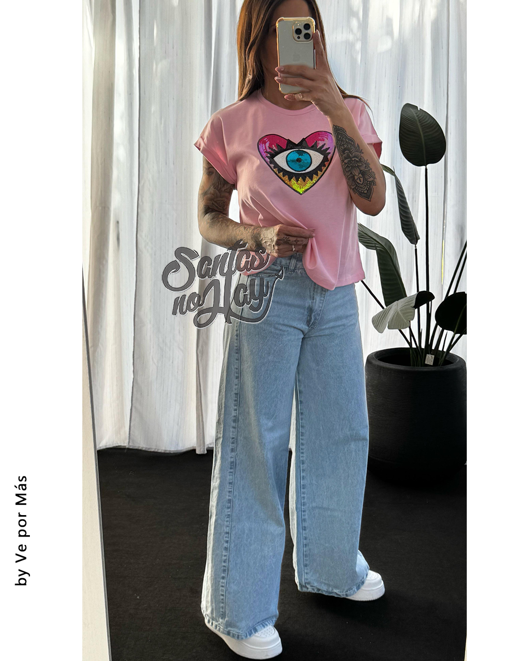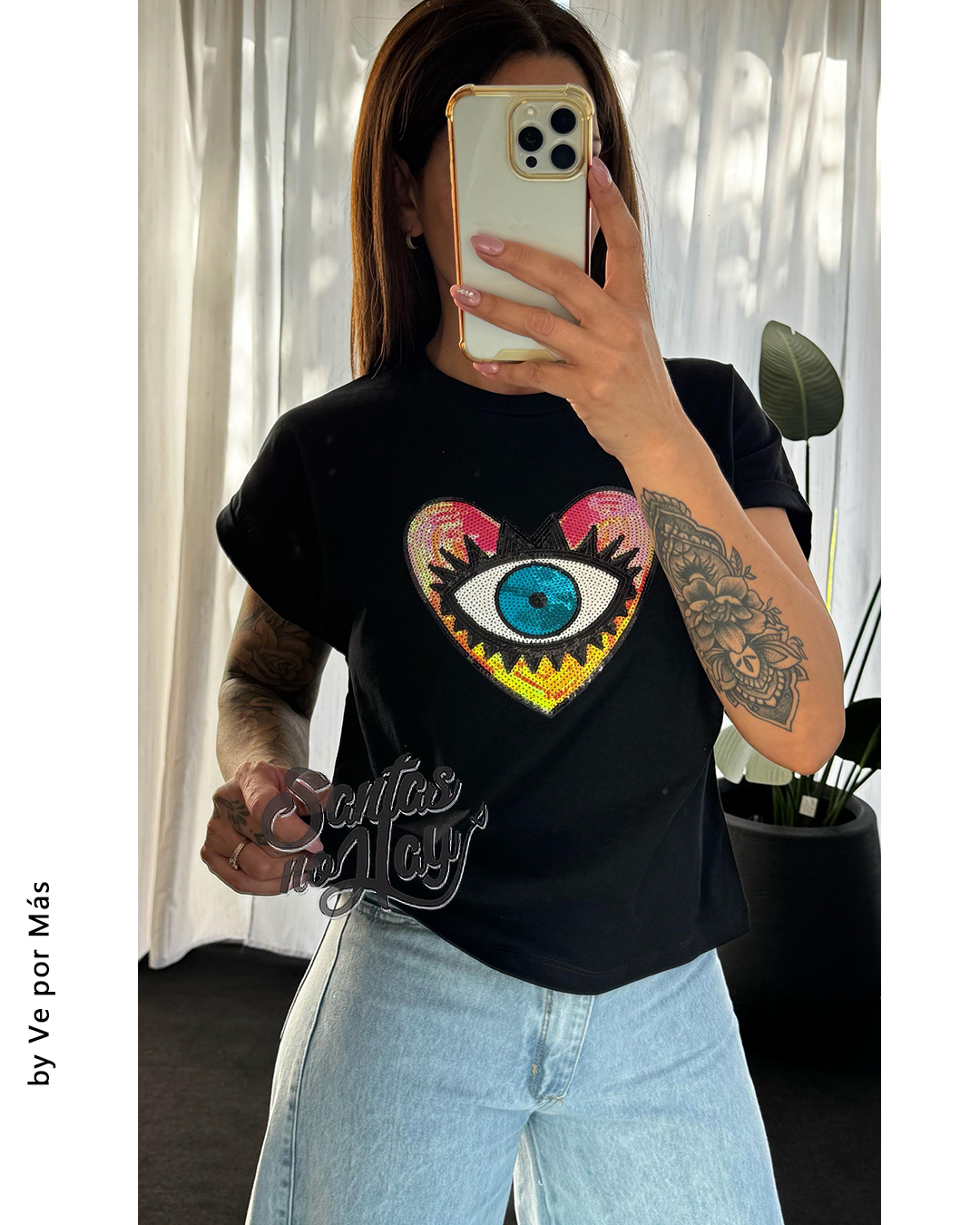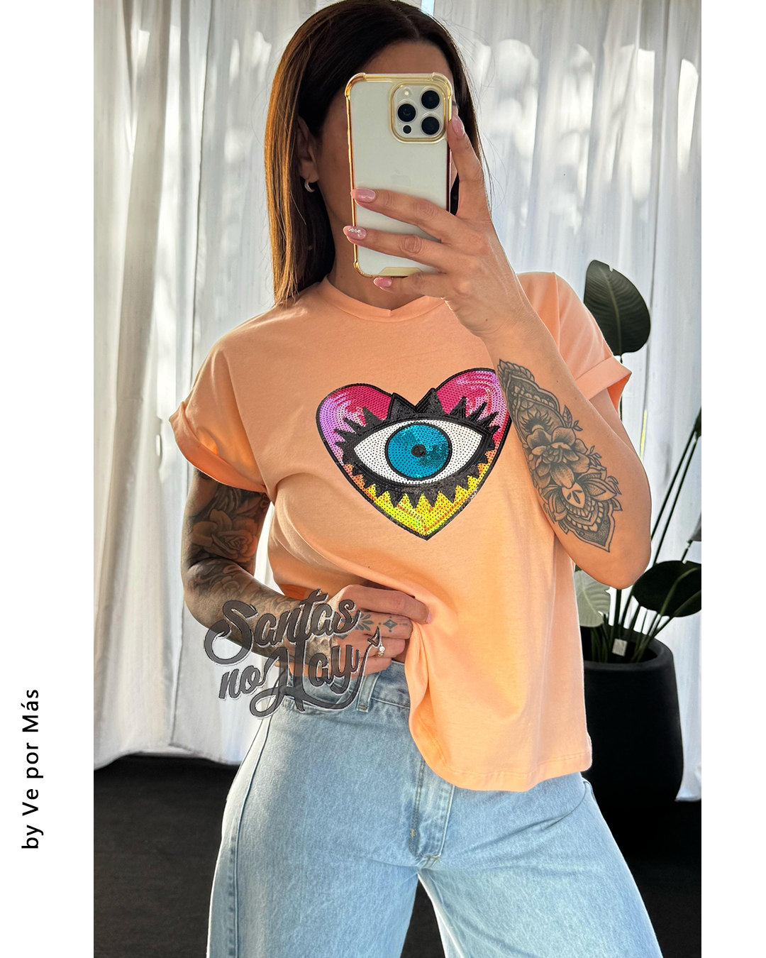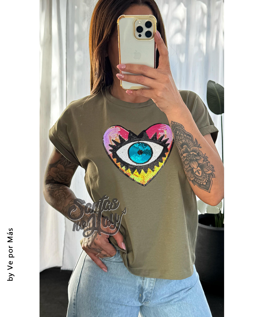 Remera corazon ojo en algodón , manga rebatible, abarca hasta XL , +colores