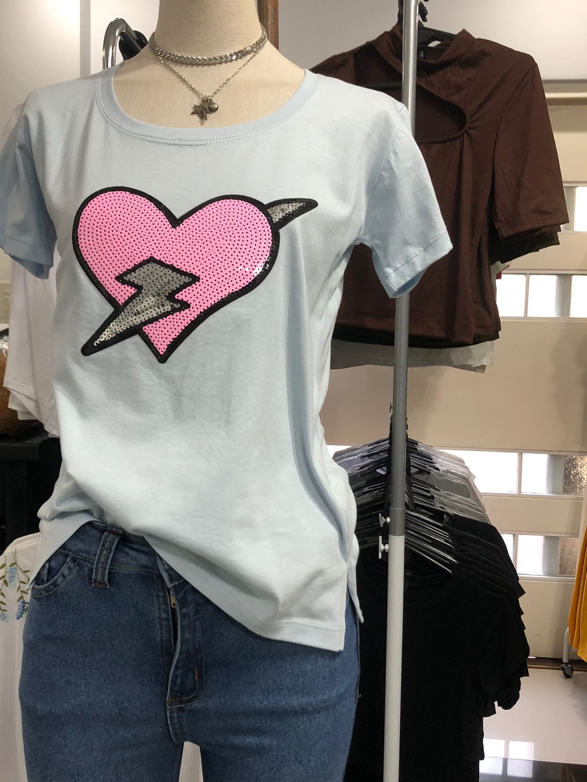 Remera de algodón Premium x talle color celeste