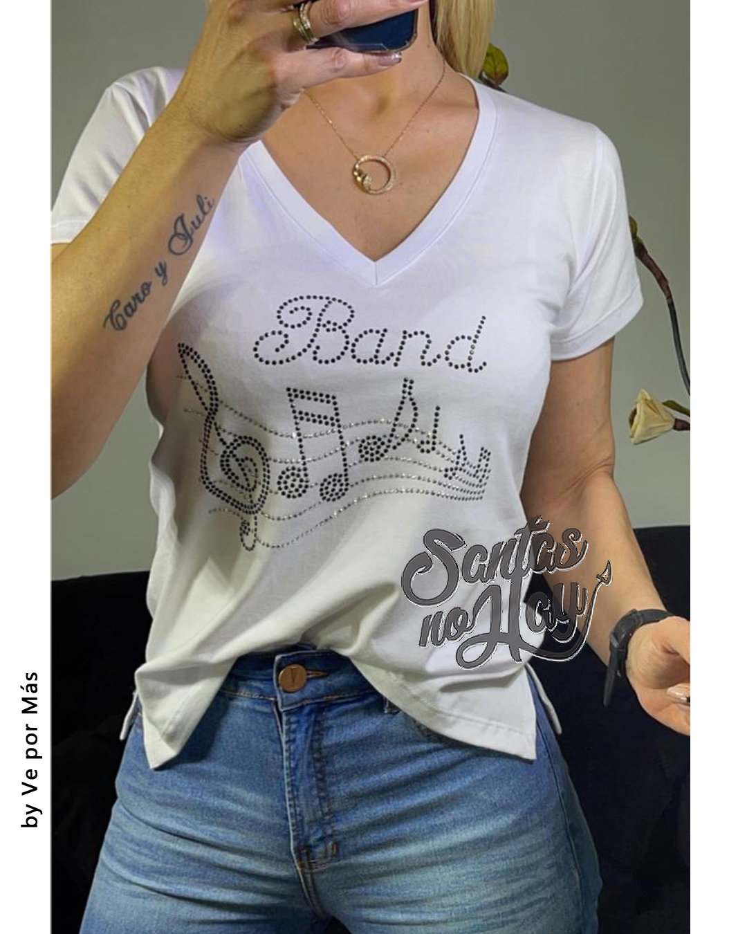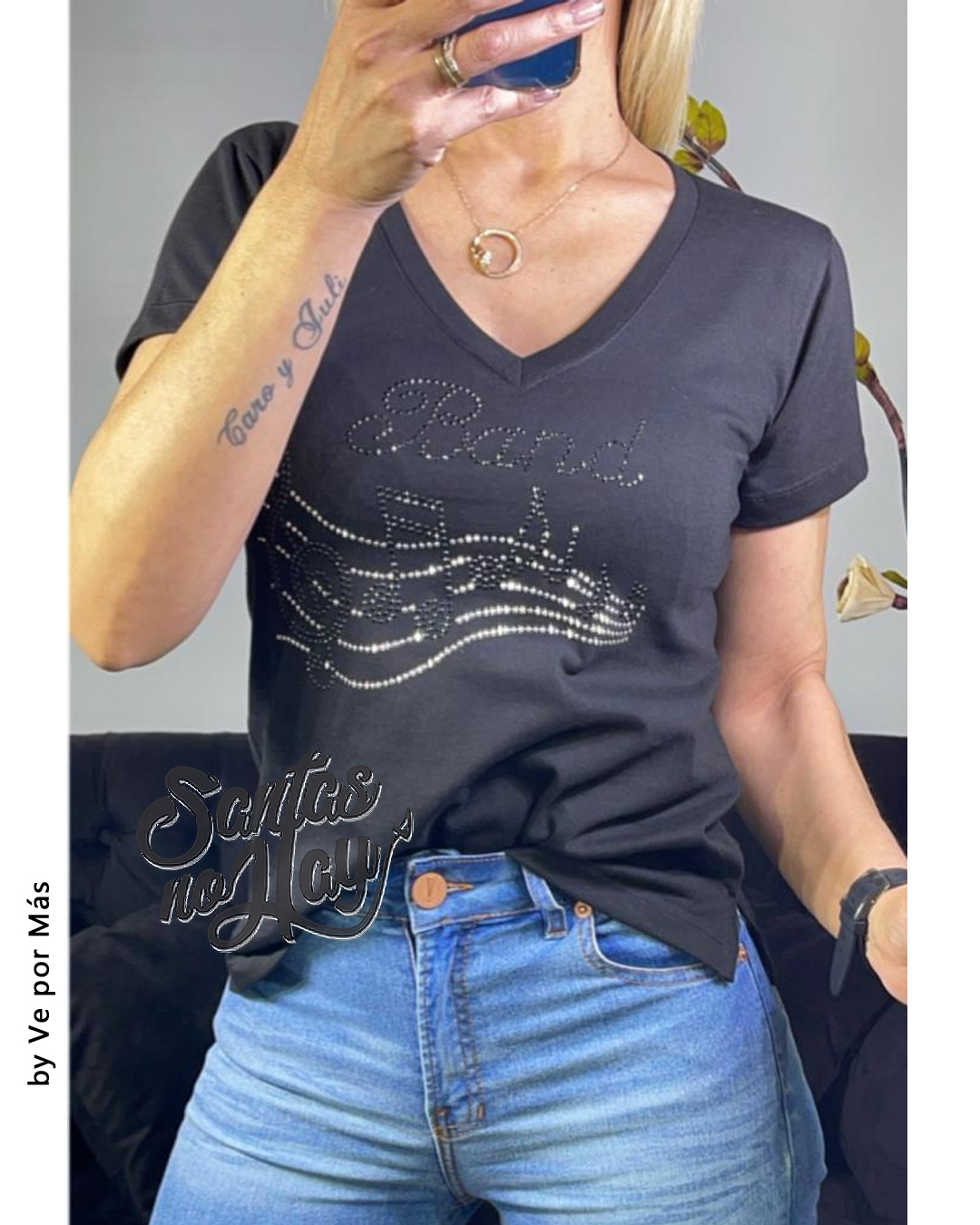 Remera en algodón peinado premium, aplique band strass +colores