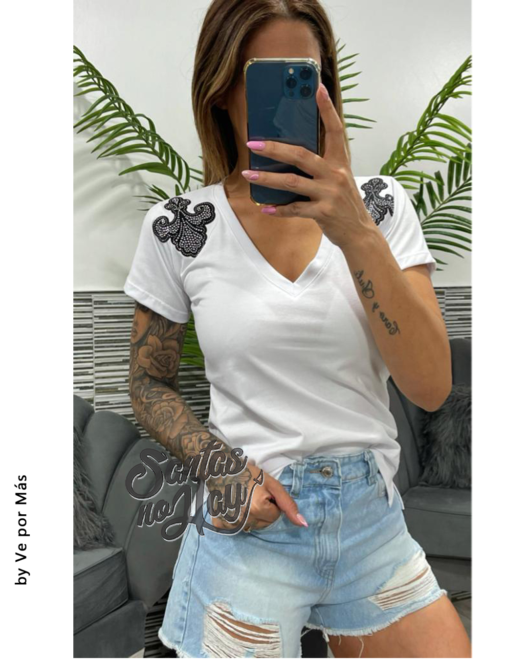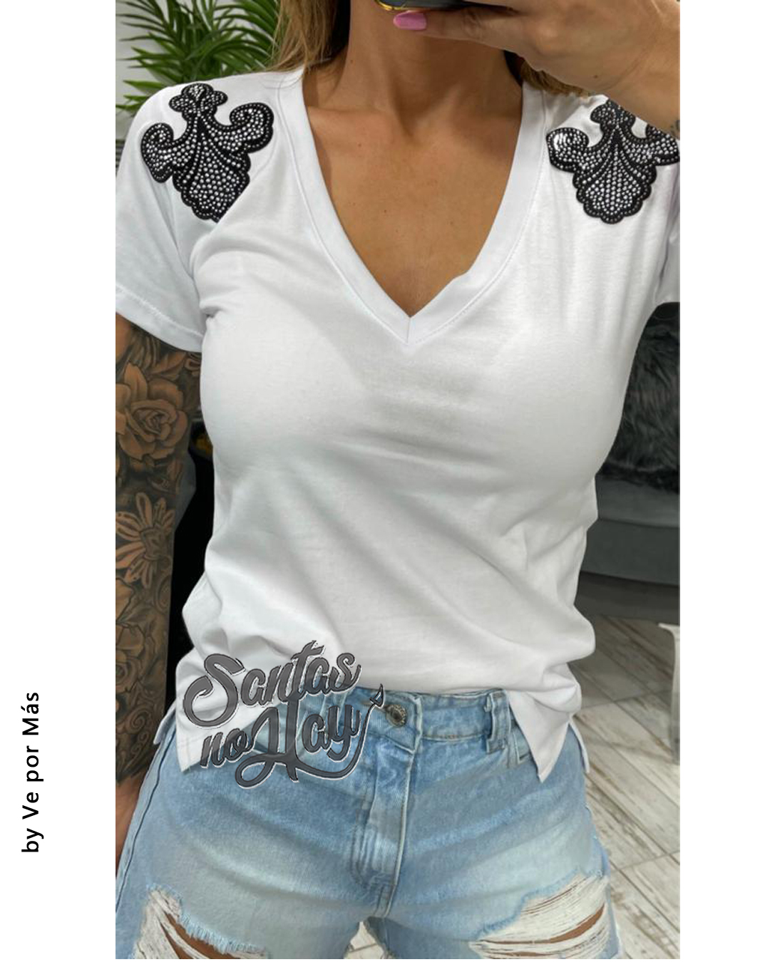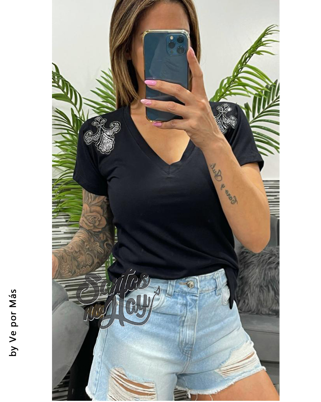Remera en algodón peinado premium, aplique hornamenta +colores xtalle