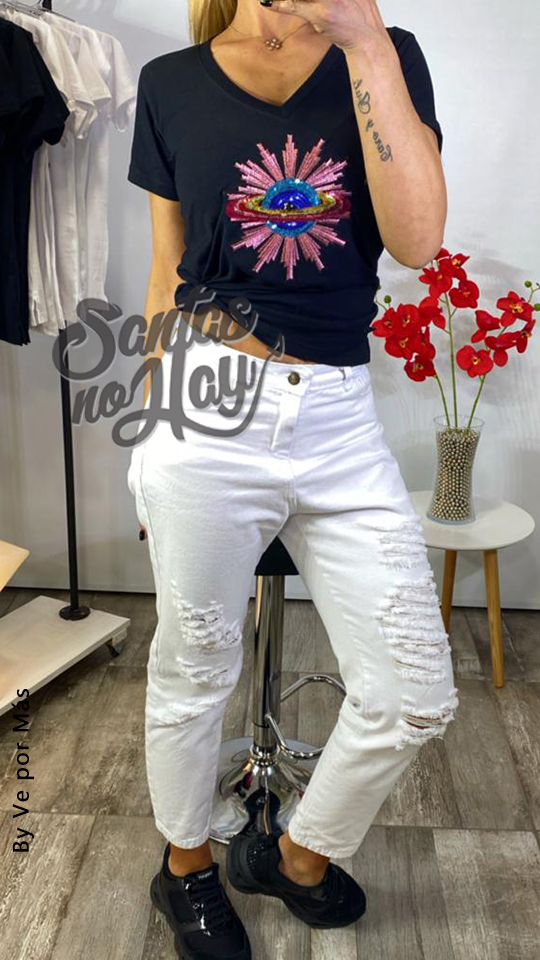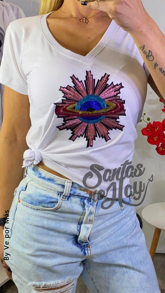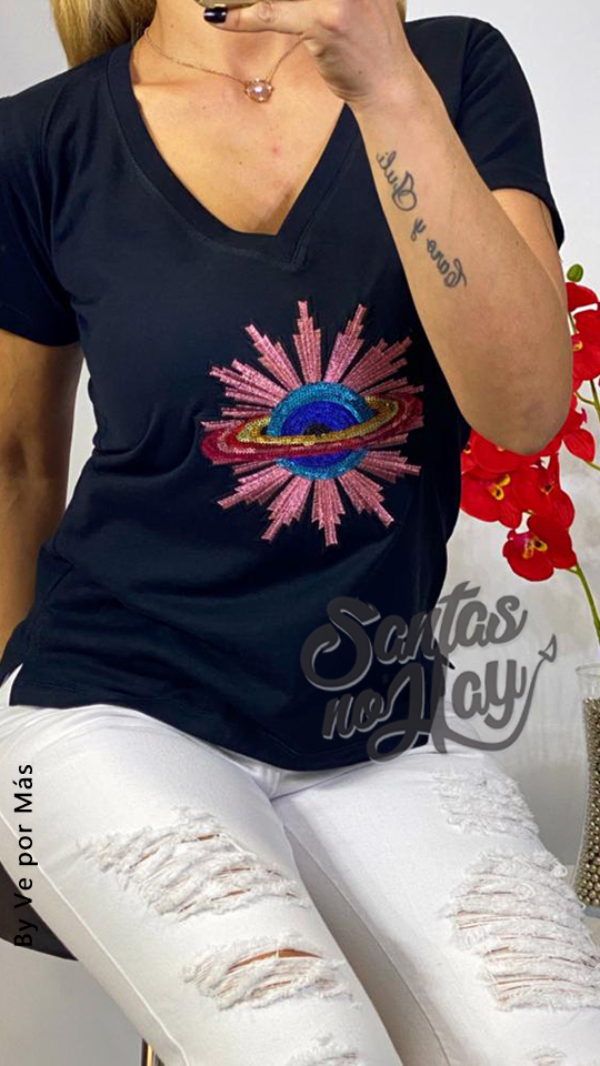 Remera planeta lentejuelas, algodón peinado premium, varios colores