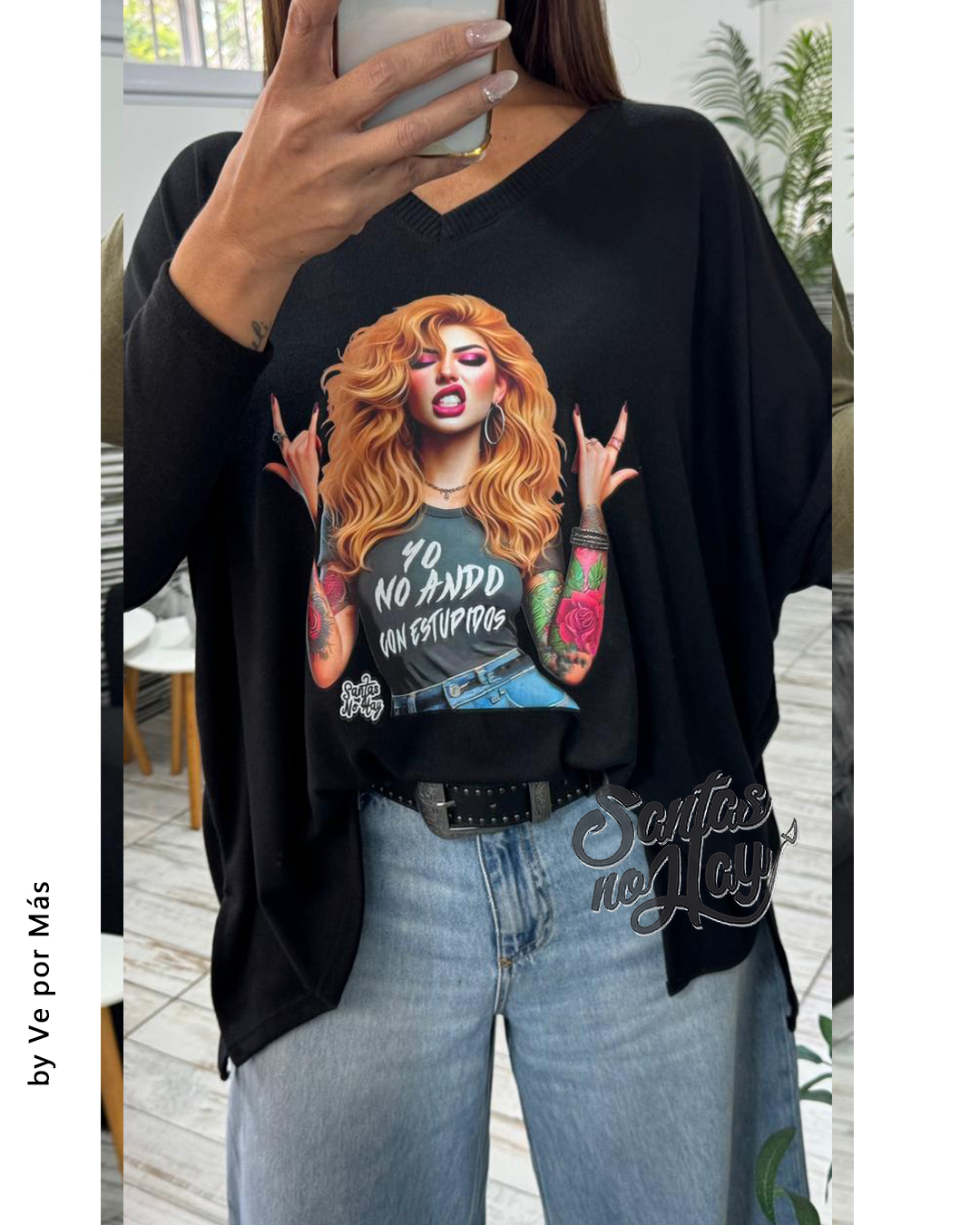Remerón Sweater oversize lanilla viscosa, estampa chica