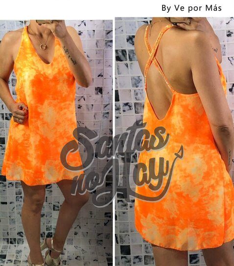 Vestido de gasa forrado, con tira espalda strass, batik 10%desc